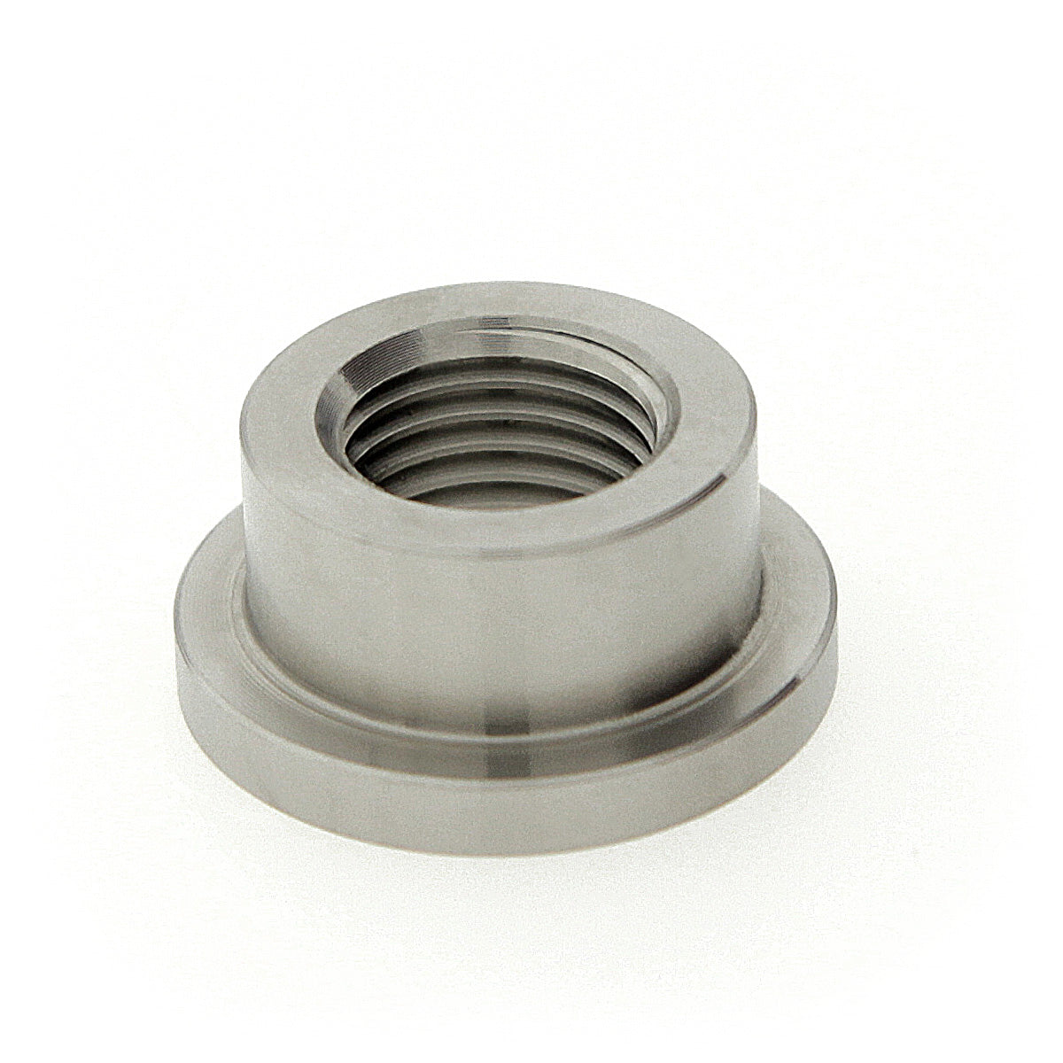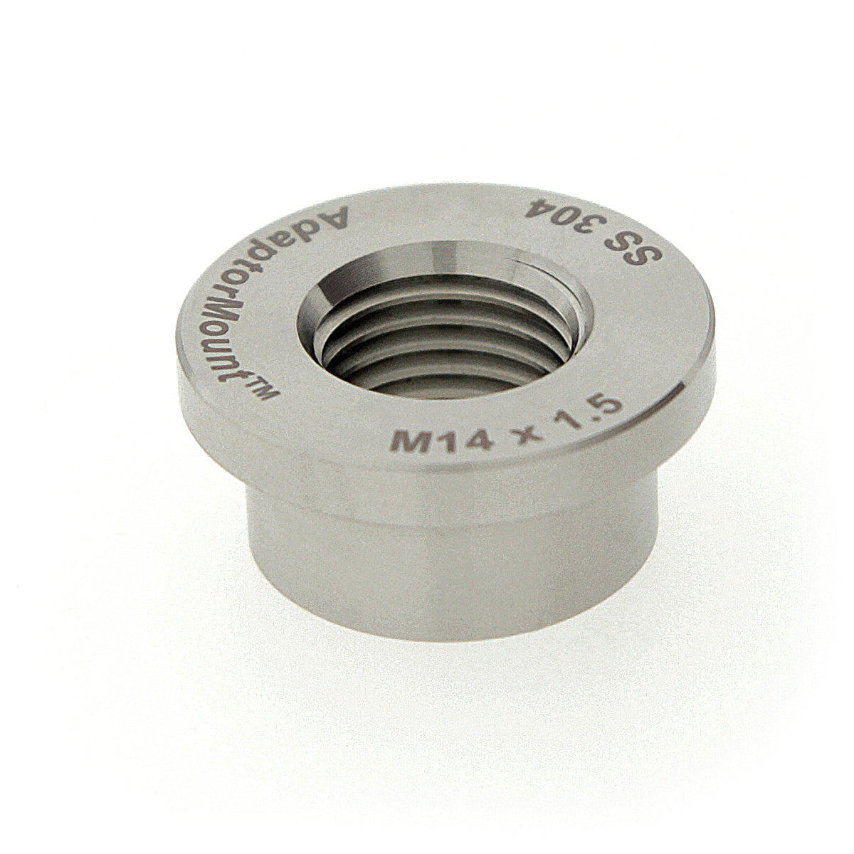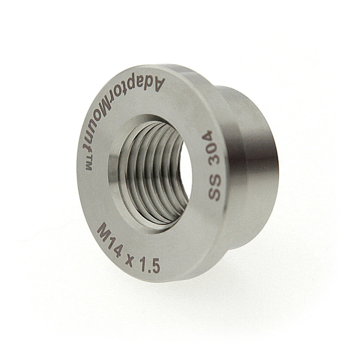 Stainless steel 304 weld-on bung for installations in corrosive environments. Threaded for standard metric M14 x 1.5 parallel (straight). Thread goes all way though the part. Fits through 7/8" hole. Other sizes (e.g. Imperial NPT) and materials are available. Simple stepped design allows easy welding. Can be welded from either side depending on your requirements. See pictures and drawing for appearance and dimensions. Laser engraved on top face for easy identification. Let us know if you have any questions.